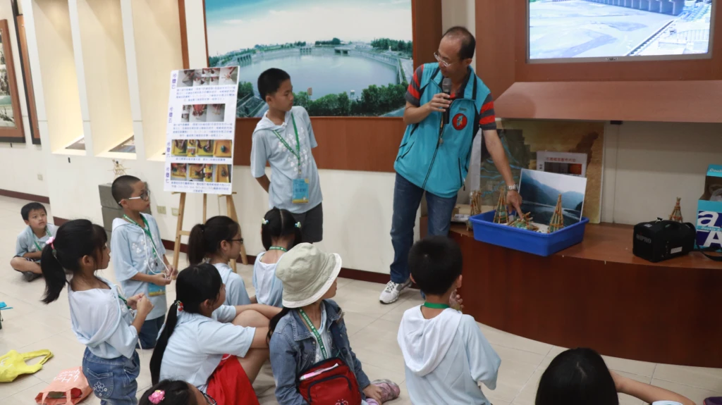 透過讓學員動手製作竹(石)笱,了解就地取材的簡易設施如何攔引溪水,面對雨季颱風時簡易攔水設施會遭遇和困難。引導學員思考為了同業及經濟發展興建及攔河堰,河水被攔截後對下游產生哪些影響?地面水及地下水使用的競合問題如何抉擇解決?